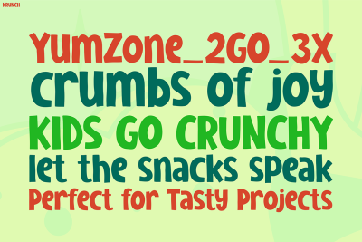 Add a crispy touch to your projects today—download Kids Font KRUNCH and let your creativity crunch loud!