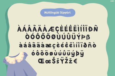 Kids Font Kuirky brings cheerful vibes and bold personality to every design. Moreover, its playful hand-drawn style feels friendly and easy to love. The chunky letterforms and soft curves create a cute and energetic look. Its fun proportions also make every word easy to read. This font stands out because it blends strong impact with warm charm. In addition, Kuirky makes childrenโs content feel more colorful and memorable. With multilingual support for 67 languages, it works perfectly for global creative projects.