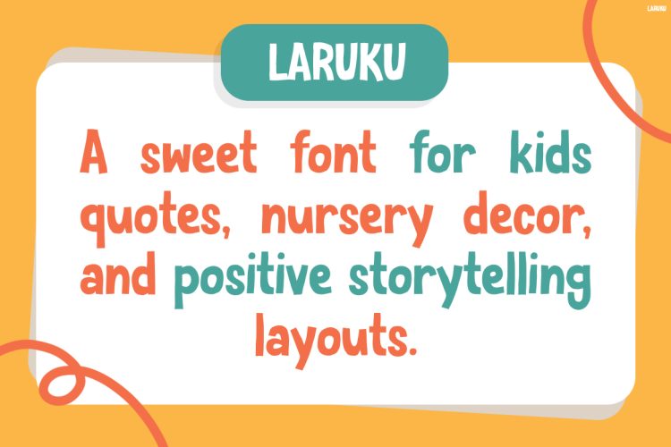 This font is perfect for designers, illustrators, educators, and content creators who focus on childrenโs themes. It works beautifully for kidsโ book authors, preschool brands, toy packaging designers, and parenting bloggers. Furthermore, itโs an excellent choice for digital creators producing Instagram content, YouTube thumbnails, or printable worksheets. If your audience includes kids, parents, or family-oriented communities, Laruku provides the perfect visual voice to communicate fun, warmth, and positivity.