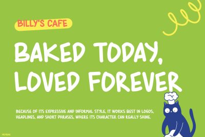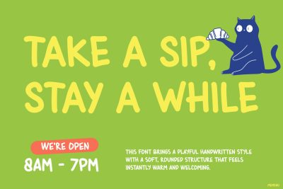 Kids Font MEMENU is a delightful display font created for playful and creative projects. Not only does it feature soft, rounded letterforms, but it also pairs perfectly with bright colors, illustrations, and cafe-style themes. Furthermore, its friendly personality makes designs feel more engaging and welcoming. Therefore, whether you are working on branding, posters, or social media, MEMENU adds a joyful and relaxed touch. Ultimately, it transforms simple text into charming visuals that people love to see.