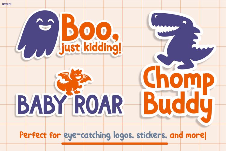 To begin with, Kids Font Notulen suits graphic designers, educators, illustrators, and brand owners. For example, designers can use it for kids branding, packaging, posters, and educational content. Likewise, it works perfectly for toy labels, snack packaging, storybooks, stickers, and logos. In addition, content creators can apply it to social media posts and playful advertisements. Meanwhile, teachers and parents can use it for learning materials. Ultimately, small businesses can build friendly and memorable brands with this font.