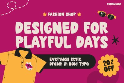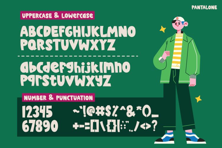 Kids Font Pantalone is perfect for designers, brand owners, and content creators who work with kids and playful themes. It is ideal for childrenโs clothing brands, toy packaging, and fashion promotions. Moreover, it suits posters, banners, and in-store displays. Social media designers can use it for Instagram posts, ads, and thumbnails. Educators and small businesses can also rely on it for friendly communication. Anyone who wants typography that feels bold, trendy, and joyful will benefit from this font.