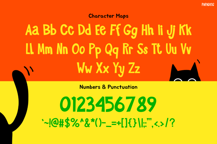 Kids Font Papadog is ideal for designers who want happy, colorful, and expressive visuals. Additionally, it works beautifully for childrenโs brands, toy packaging, school projects, and playful event graphics. Because of its lively personality, the font fits Instagram posts, social ads, and digital banners that need extra charm. It also suits dessert shops, cute cafรฉs, food stalls, and casual F&B brands that want an inviting identity. Furthermore, creators can use it for product labels, menu boards, snack packaging, or fun merchandise. Since the font has a friendly vibe, it helps small businesses appear more warm and relatable. Moreover, illustrators and content creators will enjoy using the font for quotes, posters, digital stickers, and creative marketplace items. Consequently, this typeface supports anyone who wants designs that feel bold, bright, and full of joy.