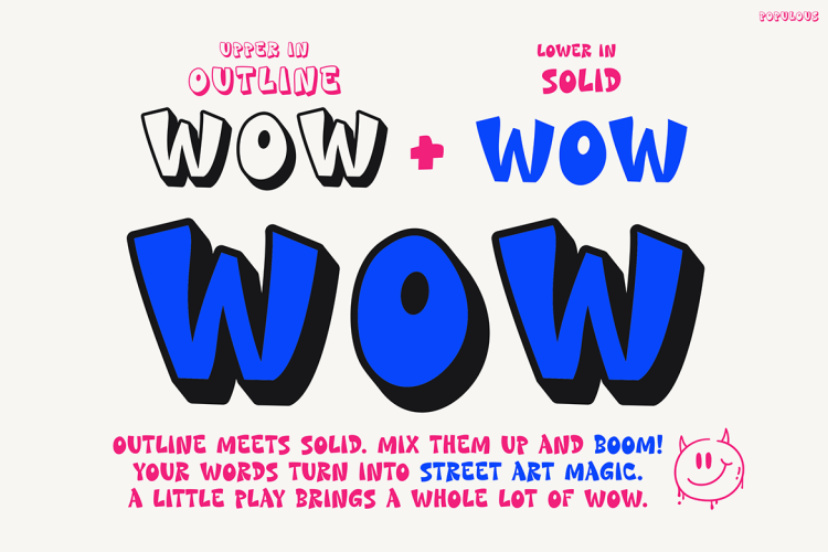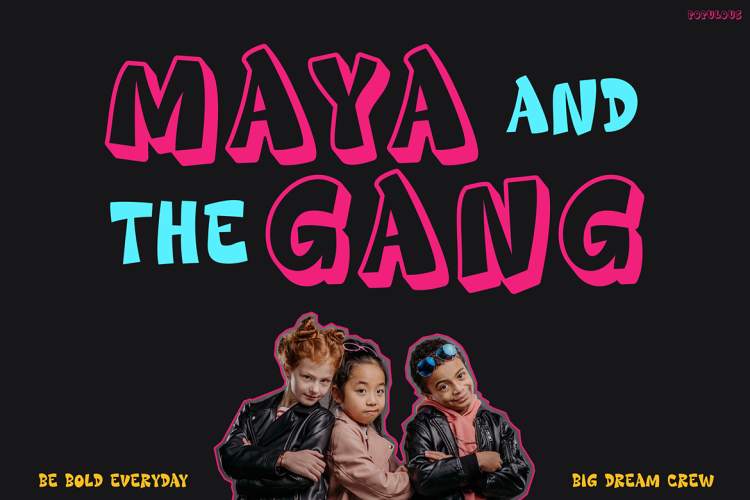 Kids Font Populous is a bold, punchy display font with attitude and playfulness packed into every letterform. With a blend of solid fills and outlined styles, this typeface delivers urban vibes and comic energy, making your text look alive, loud, and totally unforgettable. Designed with thick strokes, quirky curves, and bubbly balance, it offers a strong presence while staying fun and readable.