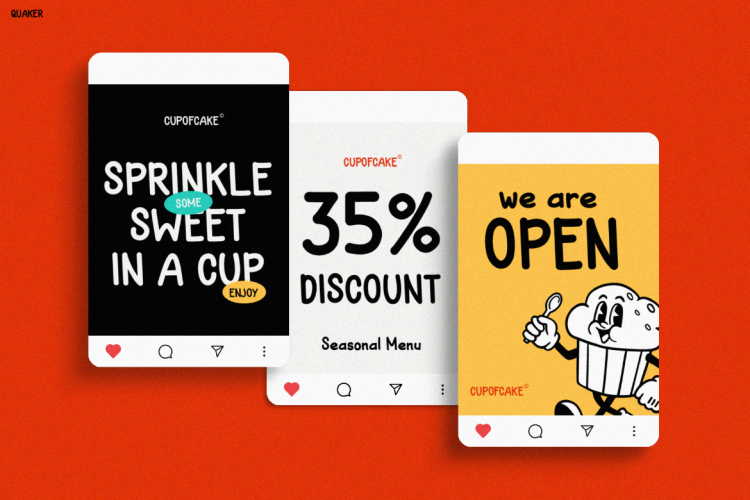 Kids Font Quaker is perfect for creative designers, educators, illustrators, and business owners who wish to add a dose of fun to their visuals. It works beautifully for childrenโs brands, toy packaging, and colorful classroom materials. Also, it shines in kidsโ apparel, party invitations, food packaging, and social media content that needs a joyful vibe.