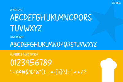 Kids Font QUOTABLE adds charm and personality to many types of layouts. Motivational quotes become more comforting, while event posters gain a brighter and more welcoming look. Furthermore, its rounded letters improve readability even when used with bold colors or busy graphics.