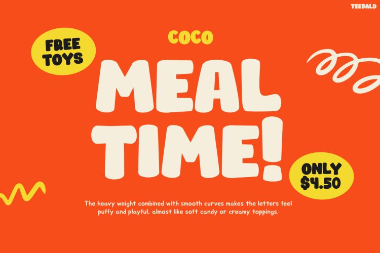 Kids Font TEEBALD is perfect for childrenโs brands, toy packaging, snack labels, and kids-themed promotions. It also works great for fast-food menus, restaurant posters, birthday invitations, school materials, and playful advertising campaigns. Designers, illustrators, marketers, and content creators can use this font to create cheerful visuals that instantly capture attention. In addition, it suits projects that require bold, fun typography that feels modern and friendly.