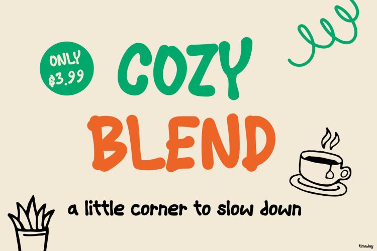 This font is ideal for designers, small business owners, cafรฉ brands, kids-related products, and creative entrepreneurs. Additionally, it suits content creators who want a fun and memorable visual identity. Whether you’re building a cozy coffee brand or designing playful packaging, Timaday helps you connect with your audience more effectively. Consequently, your designs feel more engaging and full of life.