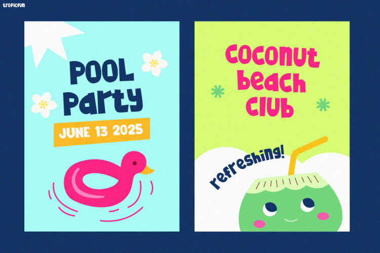 Additionally, Tropicfun works beautifully for social media posts, party invitations, or any visual project that needs a pop of happiness. Itโs especially ideal for ice cream brands, beach cafรฉs, and lifestyle products aiming for a lighthearted, tropical vibe. With its friendly curves and easy readability, your designs will instantly look fun, modern, and approachable.