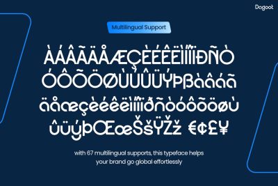 Modern Font Dagoot is a bold futuristic display typeface designed to bring a clean and innovative feel to modern design projects. At first glance, its geometric letterforms and smooth curves create a strong visual impact. Moreover, the tech-inspired shapes give the font a futuristic personality that feels fresh and dynamic. As a result, headlines look powerful and visually striking. In addition, the balanced proportions keep every letter clear and structured. Because of this, the font works well for both creative and professional layouts. Even better, Modern Font Dagoot supports 67 languages, so designers can easily create global projects with consistent typography.