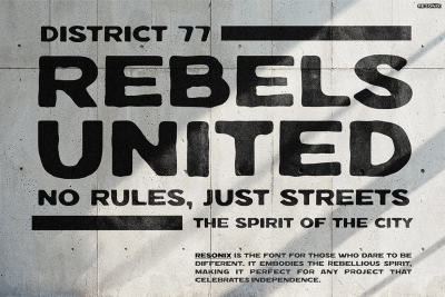 This font adds an edgy, impactful look to any project. In addition, its thick, rugged strokes and organic imperfections help designs stand out with a rebellious feel. Whether in digital or print media, Resonix consistently delivers a powerful impact. Every letter resonates with the intensity of music, ensuring maximum engagement.
