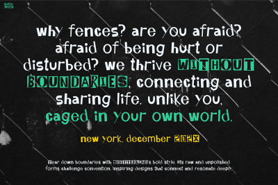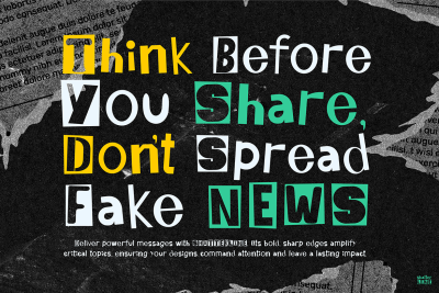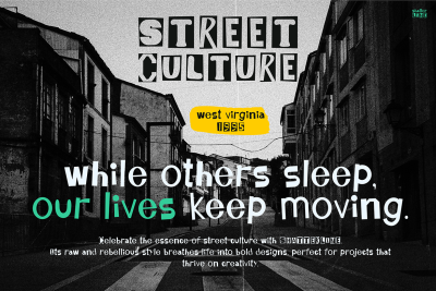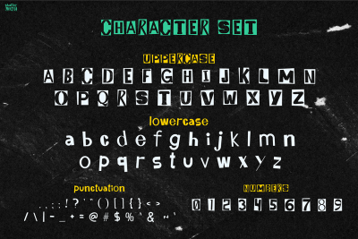 SHATTERLINE is a bold and dynamic music-inspired font. It combines a distressed, edgy look with vibrant lettering, creating an aesthetic that is both eye-catching and powerful. As a result, this font exudes energy and rebellion, making it perfect for projects that need a strong visual impact. With its torn edges, uneven letter spacing, and mixed uppercase typography, it evokes the spirit of underground music scenes and punk rock culture. Moreover, its newspaper-ripped background and contrasting colors (green and yellow on black) further enhance its raw and creative feel.