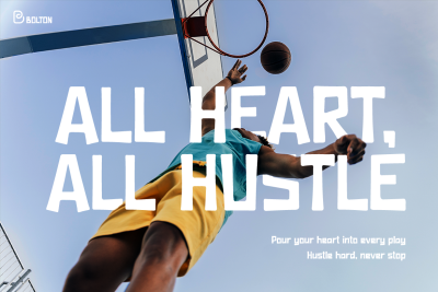 - Event Promotion and Advertising: Whether for music festivals, marathons, or extreme sports competitions, Boltonโs bold letterforms ensure high visibility and engagement.
