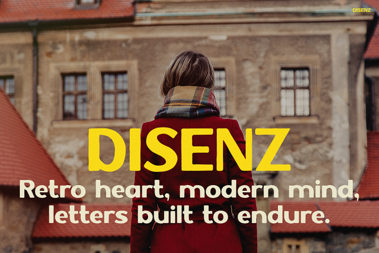 The fontโs design perfectly combines geometric precision and humanistic touches, creating a look that feels both strong and approachable. It draws inspiration from classic print posters, urban signage, and mid-century design languageโmaking it more than just a font, but a storytelling tool. DISENZ celebrates the beauty of handcrafted letters that feel alive, dynamic, and enduring, perfect for designers who want to convey strength, creativity, and authenticity in their visuals.