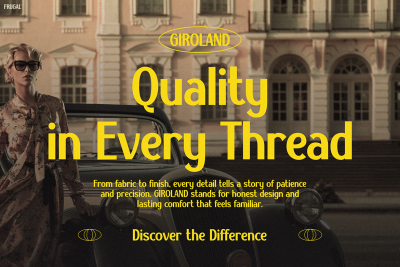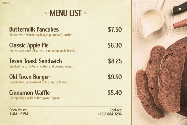 You can use it confidently on posters, packaging, cafรฉ menus, or fashion lookbooks. As a result, your designs will exude clarity, warmth, and confidence all at once. In addition, FRUGALโs balance between old-fashioned charm and modern appeal ensures it works beautifully in both print and digital settings. Itโs the kind of typeface that instantly communicates sophistication without trying too hard.