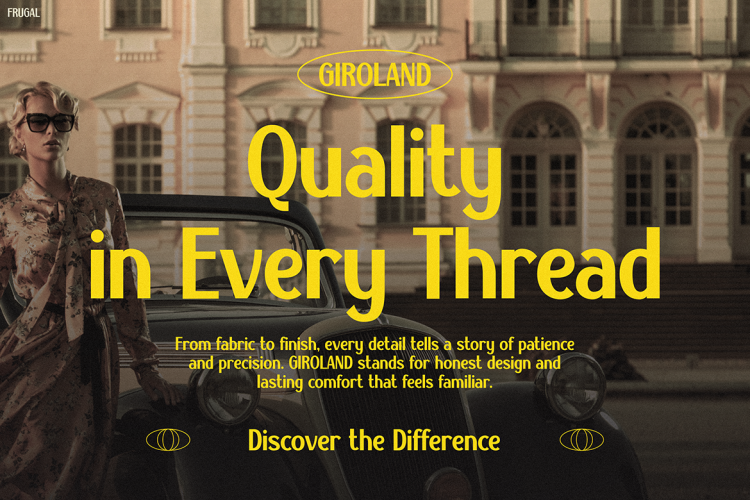 Retro Font FRUGAL was made for those who value design integrity and aesthetic consistency. Designers, brand creators, and creative entrepreneurs will appreciate how easily it transforms any project into something memorable. Furthermore, its professional tone makes it ideal for marketing teams, boutique brands, and lifestyle businesses seeking a distinctive yet trustworthy visual identity.