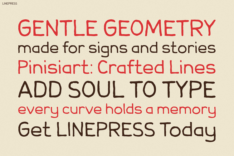 This font stands out for its simplicity, yet radiates personality. With elegant line weights, geometric proportions, and subtle retro aesthetics, Linepress becomes the perfect link between design nostalgia and modern branding needs. Itโs not just another retro fontโitโs a design statement that brings personality and readability together. Whether used in bold headlines or body text, Linepress adapts effortlessly while keeping that handcrafted charm alive.