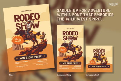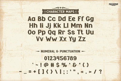 Another noteworthy feature of Retro Font MACHOMAN is its ability to evoke a sense of warmth and nostalgia. The fontโs western-inspired details connect viewers to simpler times, making it perfect for projects with themes of adventure, exploration, or heritage. Whether youโre creating content for a modern audience or one that appreciates retro vibes, this font delivers with style and authenticity.