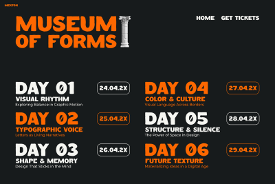 Furthermore, MEKTON adapts seamlessly to editorial and event-based content. The โMUSEUM OF FORMSโ layout proves it can handle structured information while remaining visually appealing. As a result, it’s a great asset for museums, galleries, or cultural campaigns. Not only does it suit promotional materials like โTLINE.PRO,โ but it also performs beautifully on screens, as the โMADE FOR SCREENSโ sample highlights.