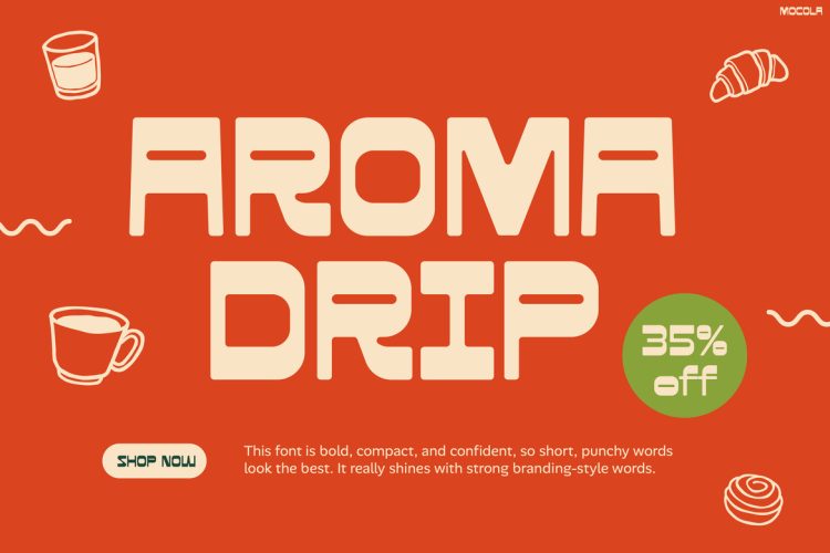 Bring warmth, flavor, and personality into your designs with Retro Font MOCOLAโbecause strong branding starts with a font that feels as good as it looks.