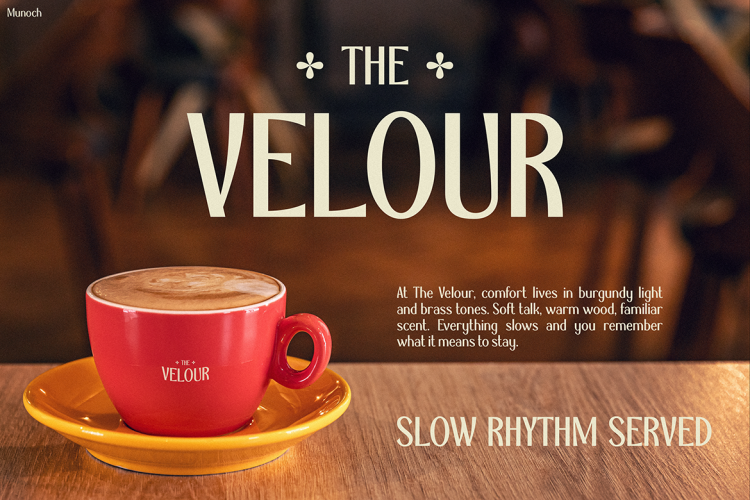 Retro Font MUNOCH was built for creators who want to make their designs unforgettable. It shines in luxury branding, coffee packaging, editorial covers, event posters, digital ads, and retro-themed projects. Furthermore, its versatility allows it to adapt effortlessly to modern or classic aesthetics.