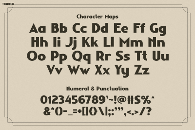With Retro Font TERDECO, your designs gain both personality and presence. Every curve and angle speaks of craftsmanship and heritage. Moreover, it allows you to evoke the charm of Art Deco while staying relevant to modern aesthetics.