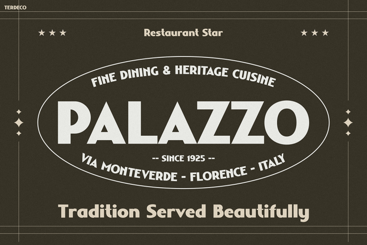 Every character in TERDECO reflects a sense of symmetry, proportion, and confidence inspired by the golden age of design. The combination of strong vertical lines and graceful curves brings depth and personality to any layout. As a result, it feels equally at home on modern branding as it does on vintage-inspired visuals. In addition, its high readability ensures that it performs beautifully in both print and digital applications, from posters and magazines to signage and packaging.