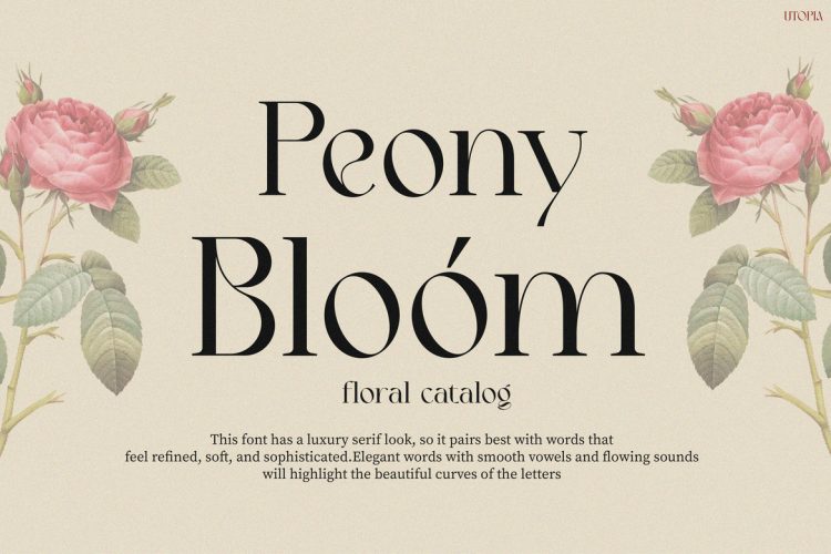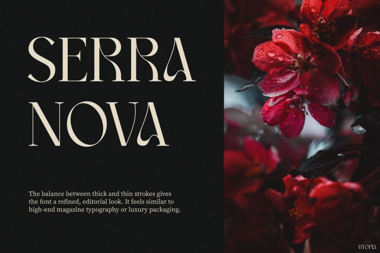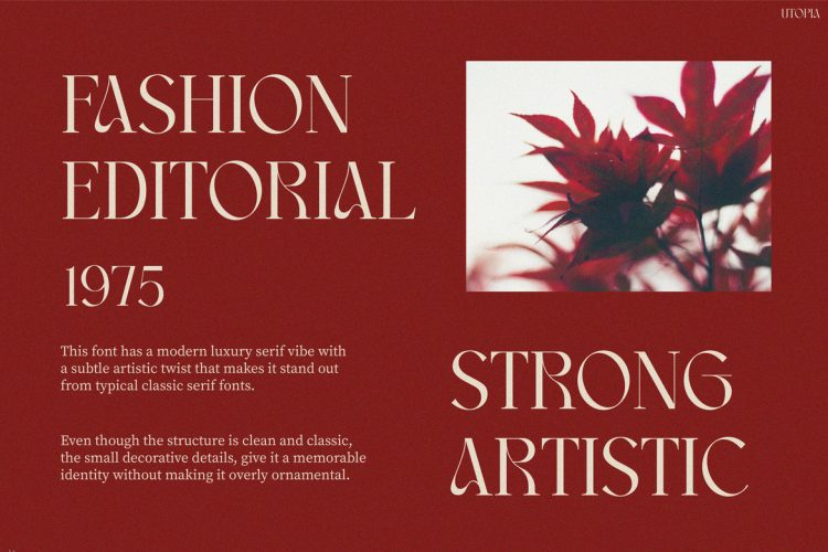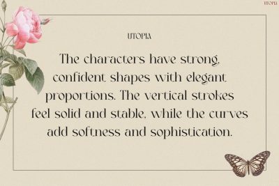 Retro Font Utopia is a stylish retro-inspired serif display font designed to create powerful and elegant typography. First, the letterforms feature strong vertical structures that bring confidence and clarity to headlines. At the same time, the soft curves introduce warmth and artistic charm. Because of this balance, the font feels both bold and refined.