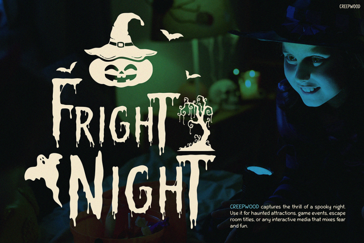 Whether you’re creating posters, story covers, event flyers, or digital media visuals, Creepwood offers a cinematic flair that immediately draws the eye. In fact, the moment someone sees your design, theyโll know something spooky โ but exciting โ is coming. Thanks to its expressive style, Creepwood doesnโt just tell a story; it becomes part of it.