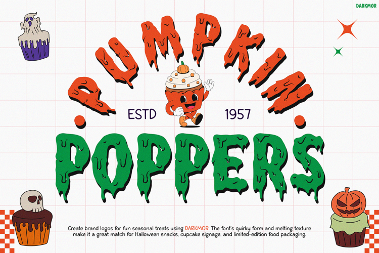 Small Business Owners: Selling sweets, toys, or seasonal goods? DARKMOR makes your labels stand out. It adds character and helps your products grab attention in stores or online. Therefore, using this font could improve brand recognition and appeal.