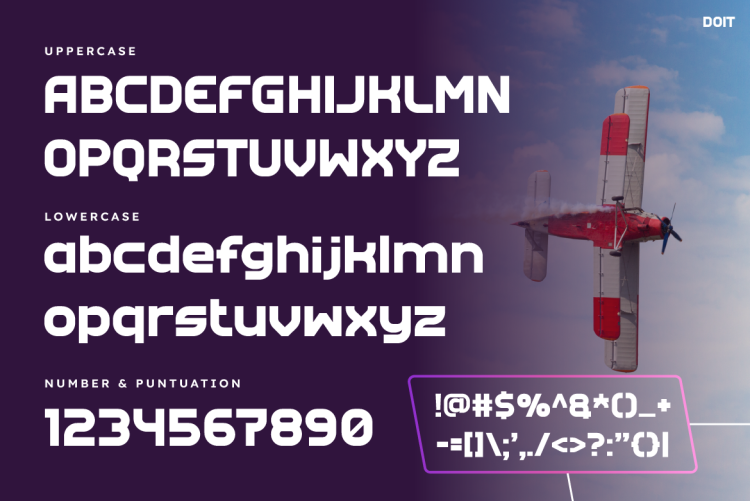 Because of its strong readability and futuristic edge, DOIT suits any visual that demands motion, strength, and modernity. Whether youโre designing for a snowboard event, a skydiving competition, or a high-tech racing team, this font ensures your message looks fast, fierce, and unforgettable.