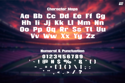 In summary, this font is a versatile typeface suited for sports branding, fitness promotions, events, digital content, and merchandise. Its bold design makes it valuable for any project needing strength and energy. Whether for designers, marketers, or creators, Sport Font Gameday elevates visuals and captures the spirit of sports and fitness.