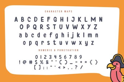 The fontโ€™s charming and approachable style blends whimsical pirate elements with simple readability. Whether for a pirate adventure storybook or a birthday party invitation, Kids font Story Time adds personality to any design. It works well across different platforms, including print and digital media, while maintaining clarity and visual appeal.