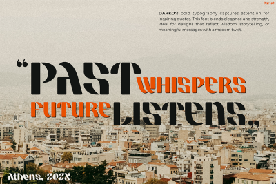 The font works well for album covers, editorial layouts, and other designs demanding strong typography. Whether crafting a luxury brand or a personal project, DARKO offers versatility and creative potential to bring your vision to life.