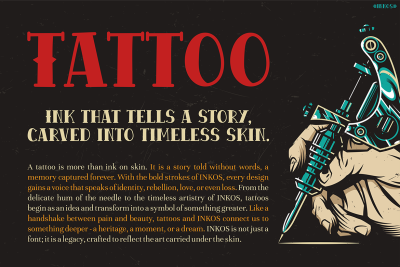 The tattoo font INKOS is perfect for individuals and brands that want to channel a bold, artistic, and alternative aesthetic. In particular, it appeals to: