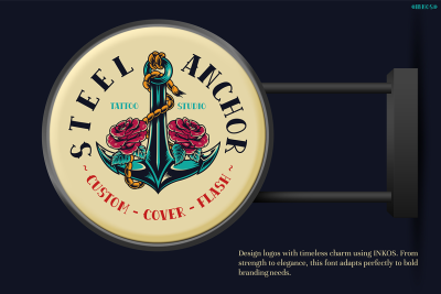 Furthermore, the INKOS tattoo font is crafted with versatility in mind. It seamlessly blends into designs for apparel, signage, posters, and branding. For instance, its vintage yet contemporary style ensures it can adapt to a variety of artistic expressions. Whether you’re aiming to design something fierce or romantic, this font has the flexibility to fit your creative vision.