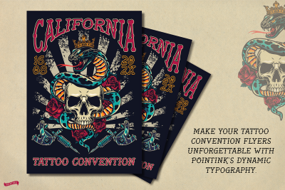 Tattoo Font Pointink is a striking typeface inspired by traditional tattoo artistry. It seamlessly combines bold strokes and sharp edges, creating a distinctive, eye-catching design. Furthermore, the font’s intricate details and handcrafted textures give it a unique and authentic appearance. Its precise design reflects the creativity and artistry often associated with tattoo culture.